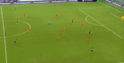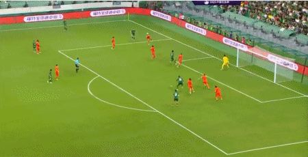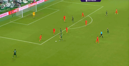 第47分钟,张玉宁杀入禁区,小角度射门被挡出